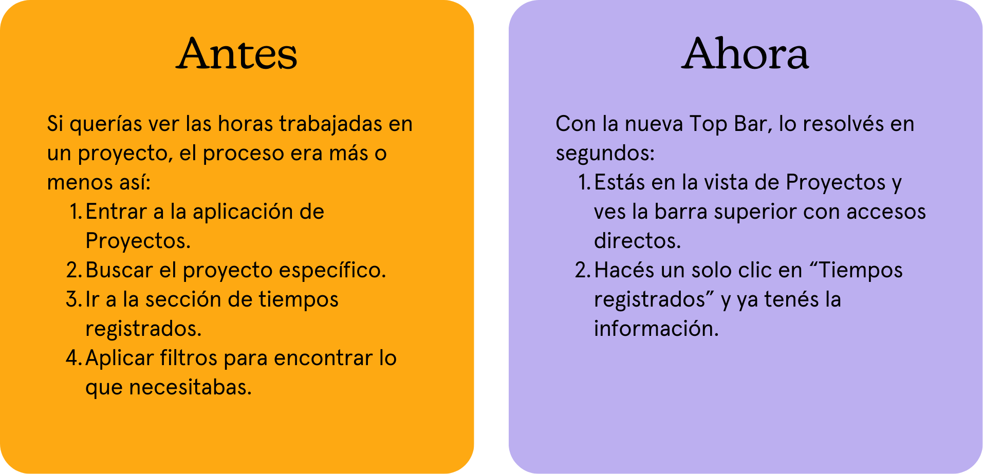 - Buscás cuántas horas se trabajaron en un proyecto y terminás abriendo distintas secciones para verlo.