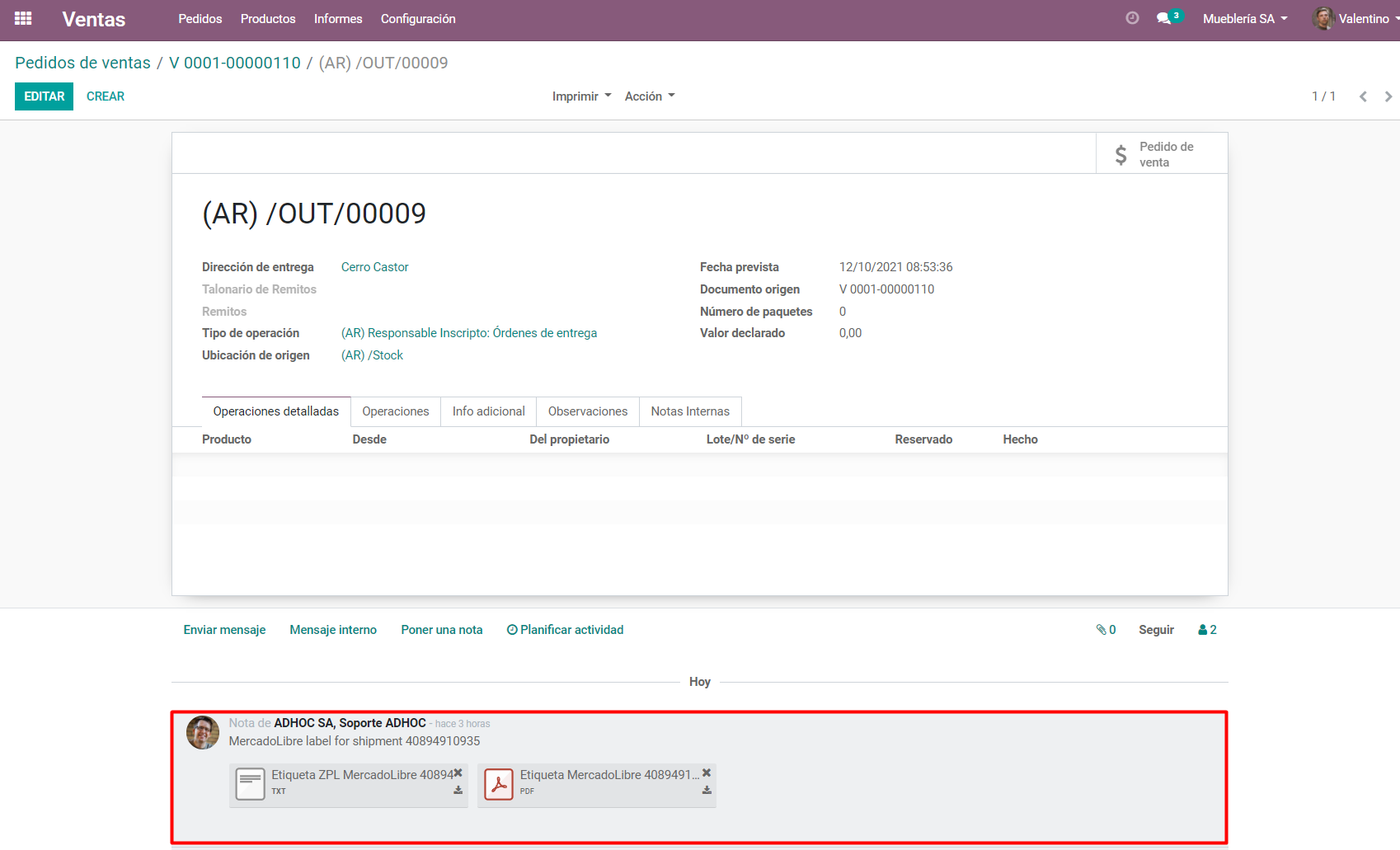 Ahora cuando realices una venta se creará un método de envío (Cualquiera de los 5 métodos mencionados anteriormente) los cuales se vincularán de manera automática a la orden de venta según corresponda.