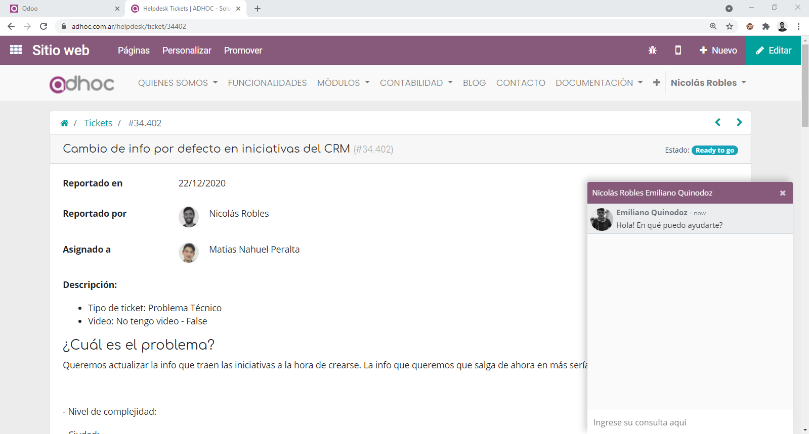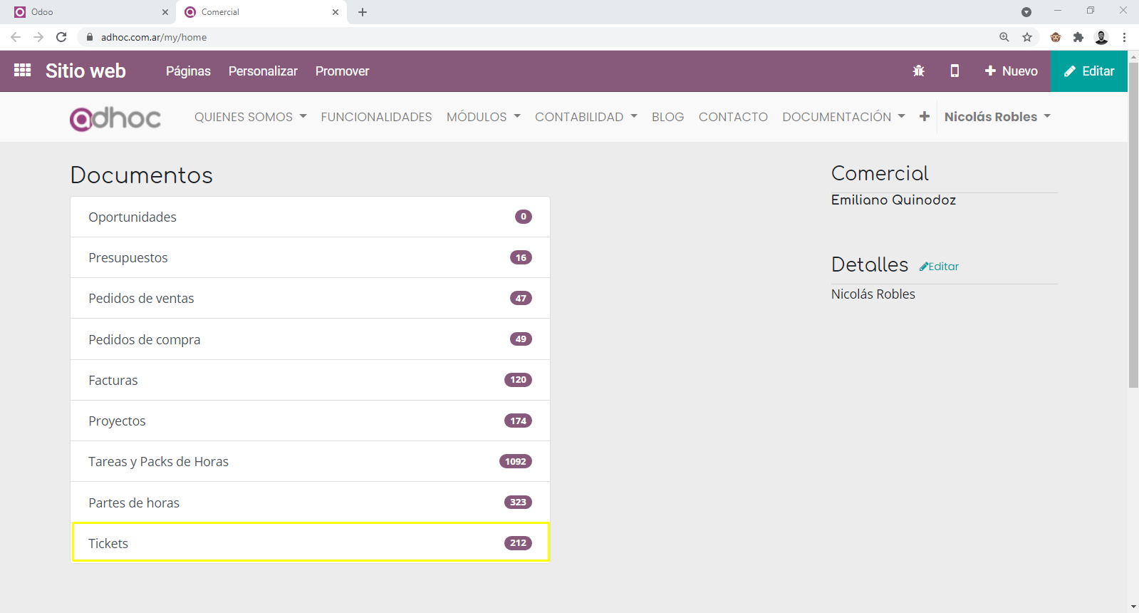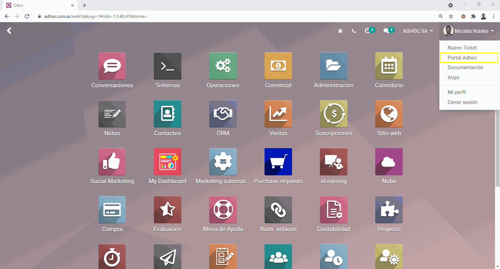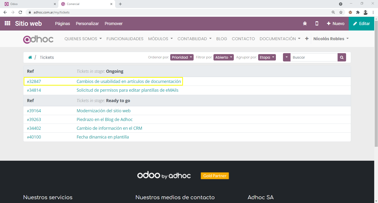 Si sos un usuario con acceso a carga de tickets en Odoo by Adhoc vas a poder seguir los siguiente pasos.