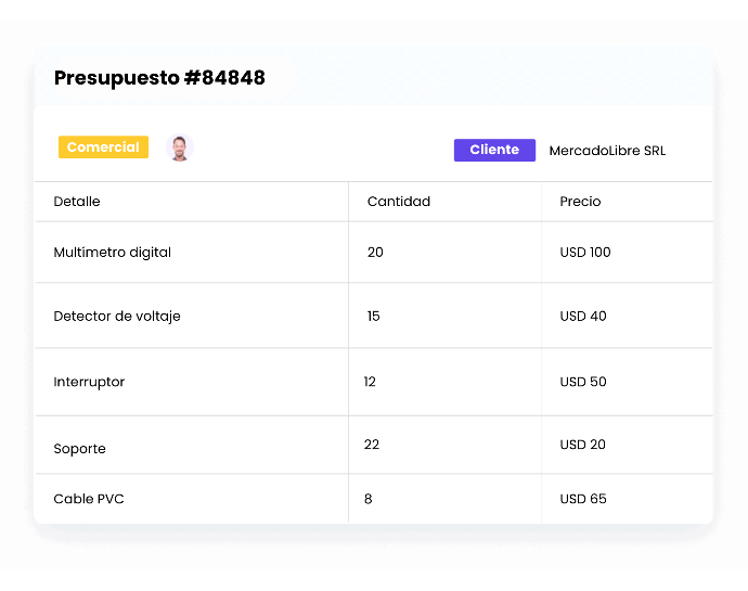 ¿Tus clientes esperan días una cotización de tu empresa? Olvidate de los PDF tradicionales y hacelo online de forma automática, cotizá en cualquier moneda y tipo de cambio. Además generá presupuestos con un gran diseño para diferenciarte de tu competencia y automatizá el cobro al instante con las integraciones de pago directo en tus presupuestos.
