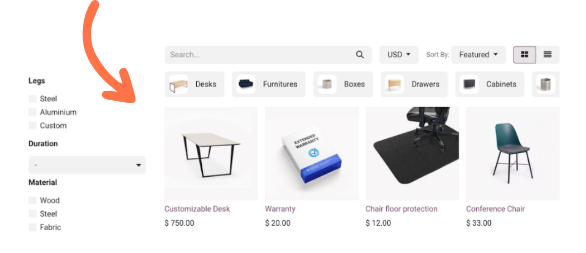 Vista de catálogo de productos para armar presupuestos sin errores.