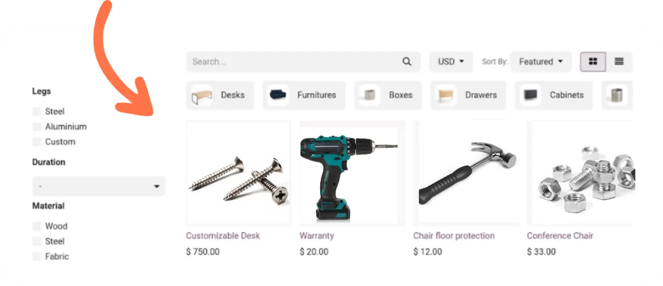 Vista de catálogo de productos para armar presupuestos sin errores.