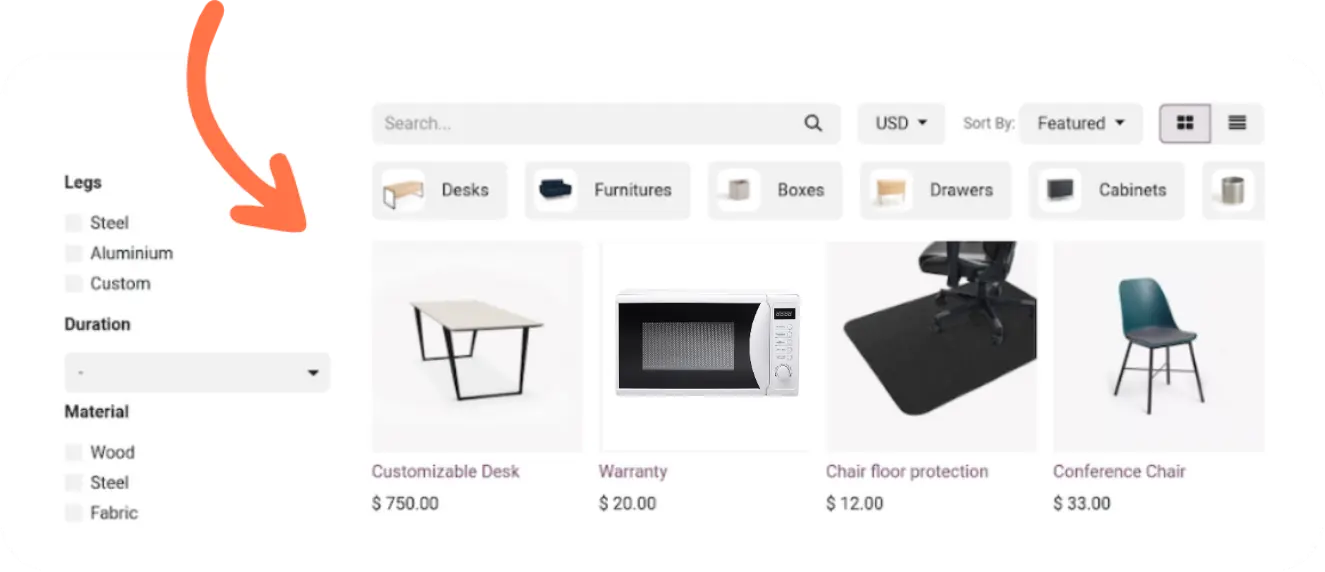 Vista de catálogo de productos para armar presupuestos sin errores.
