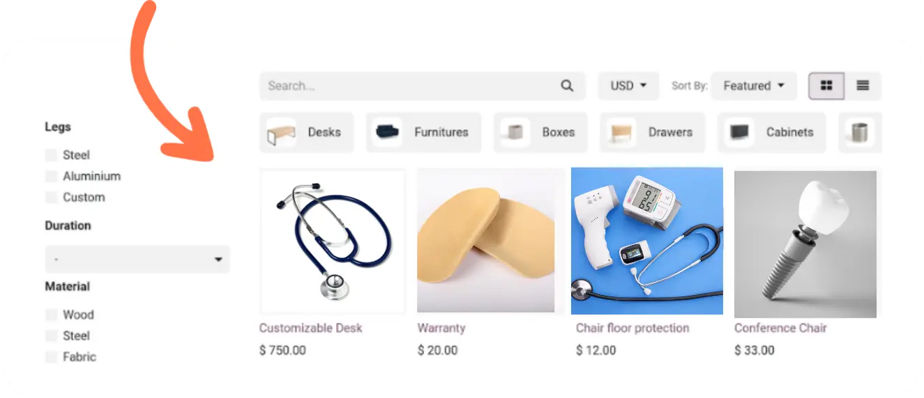 Vista de catálogo de productos para armar presupuestos sin errores.