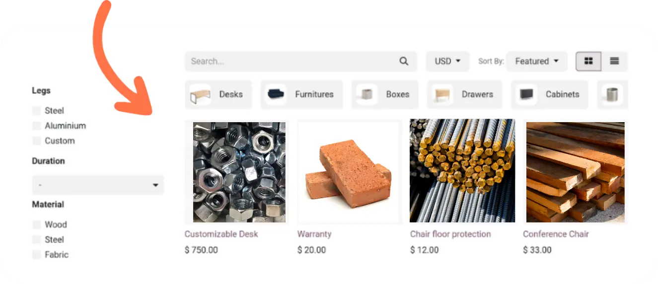 Vista de catálogo de productos para armar presupuestos sin errores.